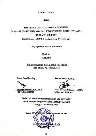 Implementasi Algoritma Genetika pada Aplikasi Penjadwalan Kegiatan Belajar Mengajar Berbasis Website (Studi Kasus: SMP N 2 Kaligondang, Purbalingga)