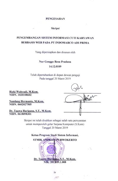 Pengembangan Sistem Informasi Cuti Karyawan Berbasis Web Pada PT Indomarco Adi Prima