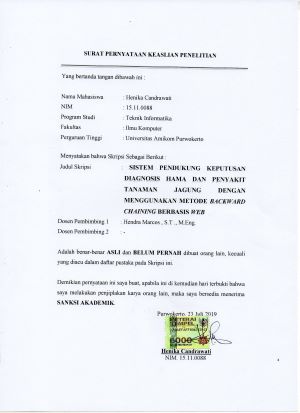 Sistem Pendukung Keputusan Diagnosa Hama dan Penyakit Tanaman Jagung dengan Menggunakan Metode Backward Chaining Berbasis Web